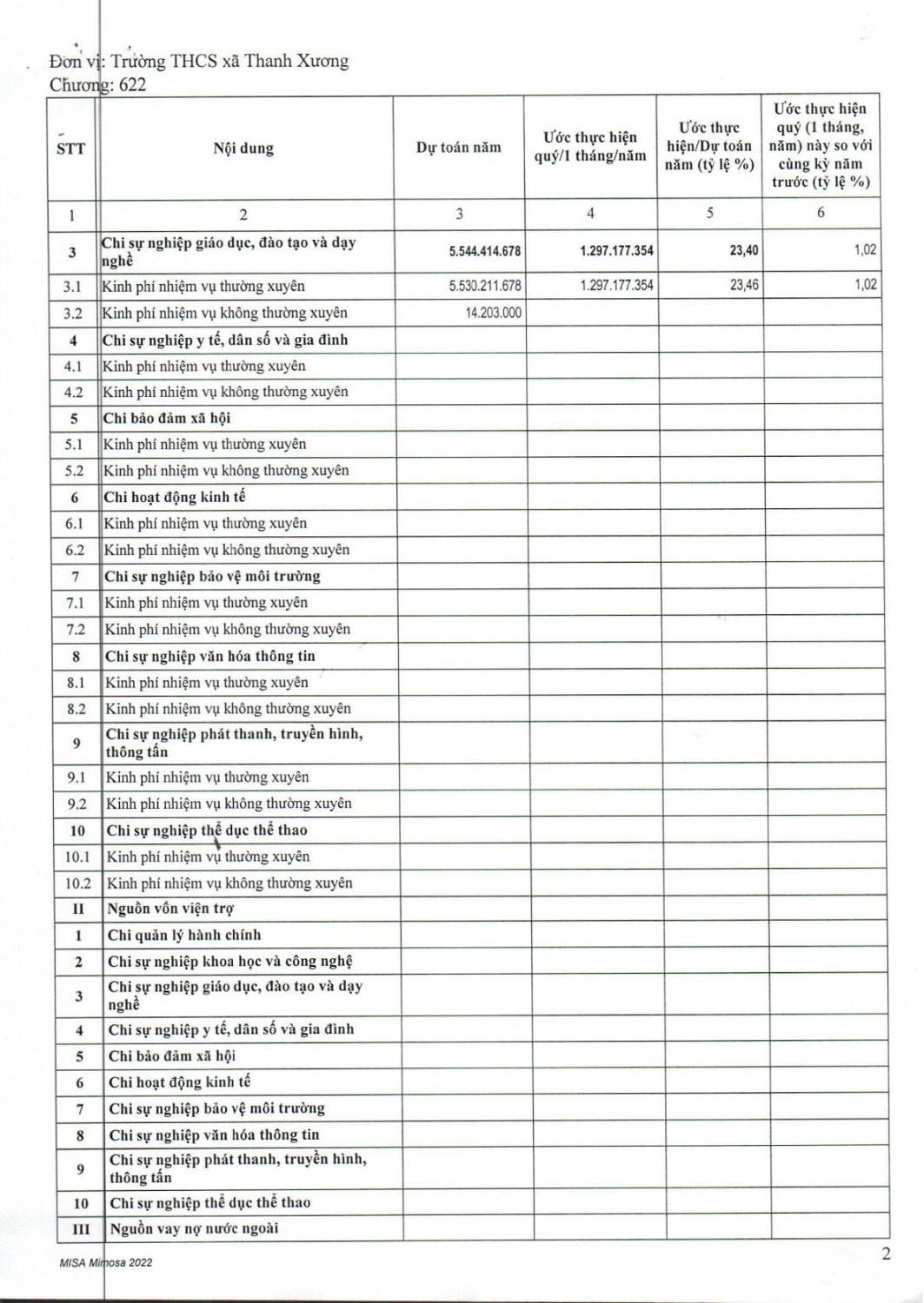 CÔNG KHAI THỰC HIỆN DỰ TOÁN THU CHI NGÂN SÁCH QUỸ I 2022