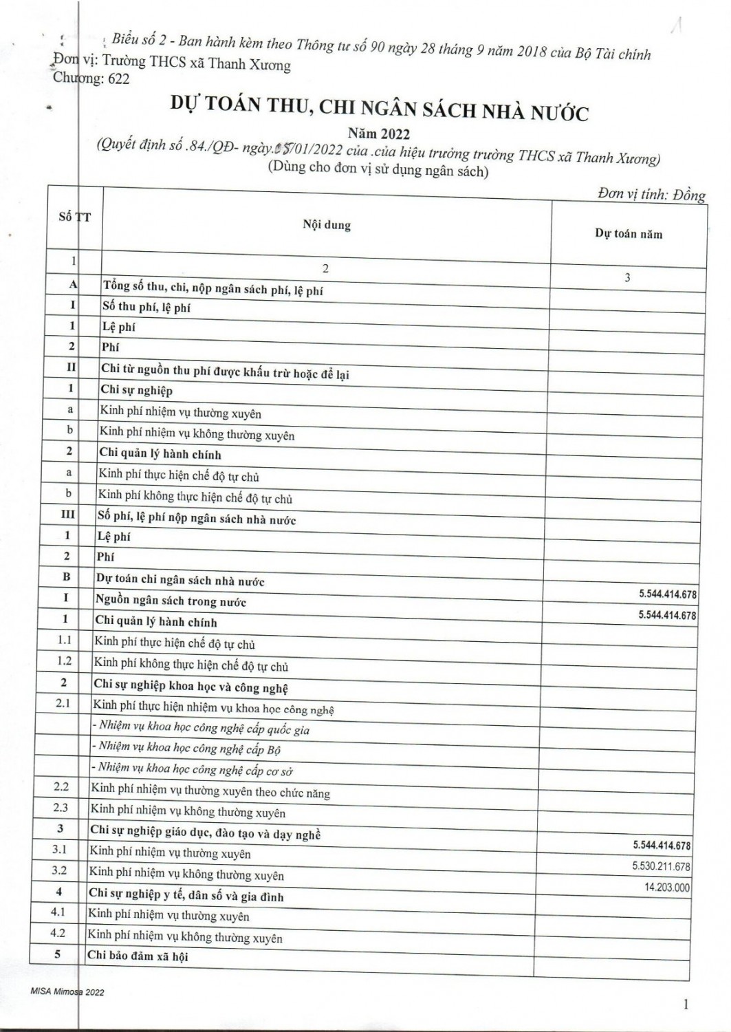 QĐ VỀ VIỆC CÔNG BỐ DỰ TOÁN NGÂN SÁCH NĂM 2022