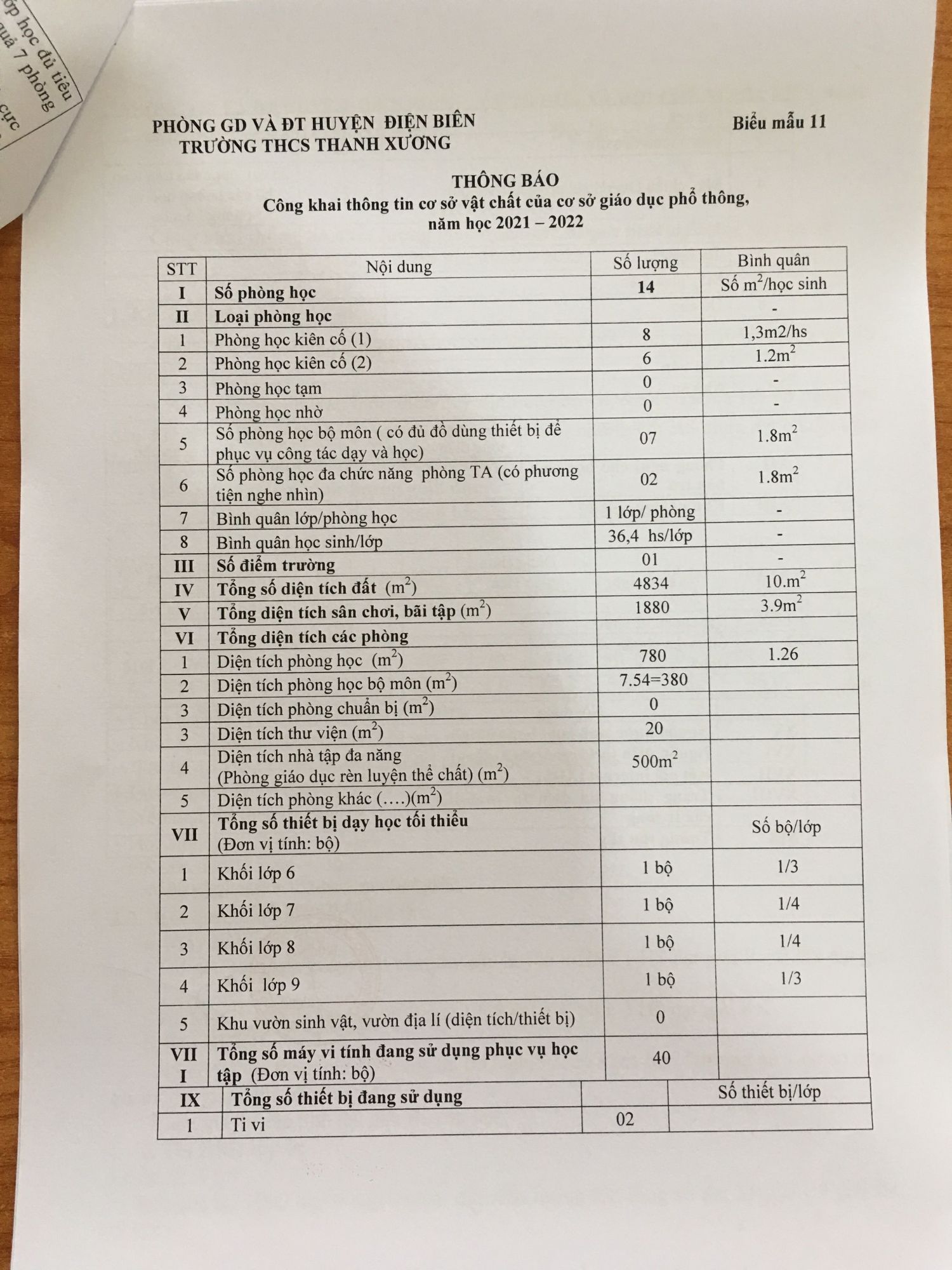 Trường THCS xã Thanh Xương thực hiện ba công khai năm học 2021 - 2022