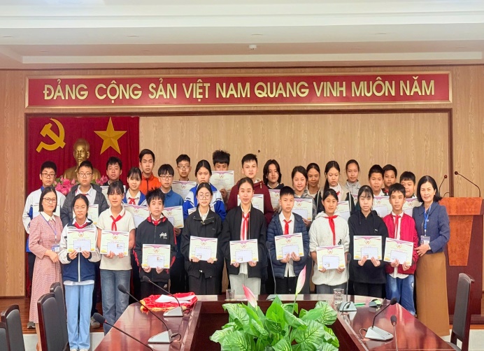 Khen thưởng học sinh đạt giải trong Cuộc thi Olympic tiếng Anh trên Internet (IOE) cấp huyện, năm học 2024-2025