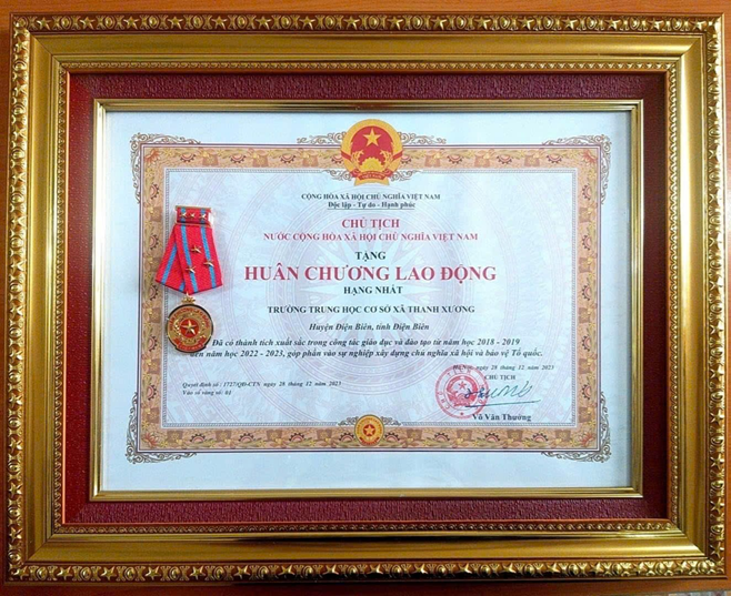 Trong năm học 2023-2024, với sự lãnh đạo, chỉ đạo của BGH nhà trường, sự tâm huyết tận tụy hết lòng vì học sinh thân yêu của các thầy giáo, cô giáo. Sự cố gắng nỗ lực của các em học sinh. Tập thể nhà trường đã đạt được thành tích cao: Được chủ tịch nước tặng thưởng Huân chương Lao động Hạng Nhất và nhiều phần thưởng cao quý khác, được các cấp ghi nhận.