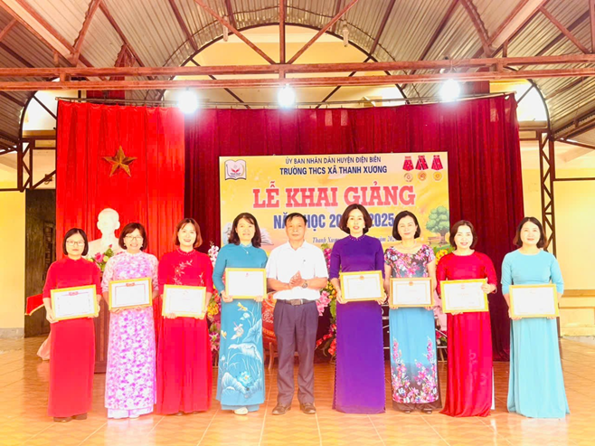 Về dự Lễ khai giảng của nhà trường có đồng chí Quàng Văn Toàn ủy viên Ban thường vụ Đảng ủy – Phó chủ tịch ủy ban nhân dân xã Thanh Xương. Đại diện Hội CMHS của nhà trường, Tập thể CBGVNV và 571 em học sinh.