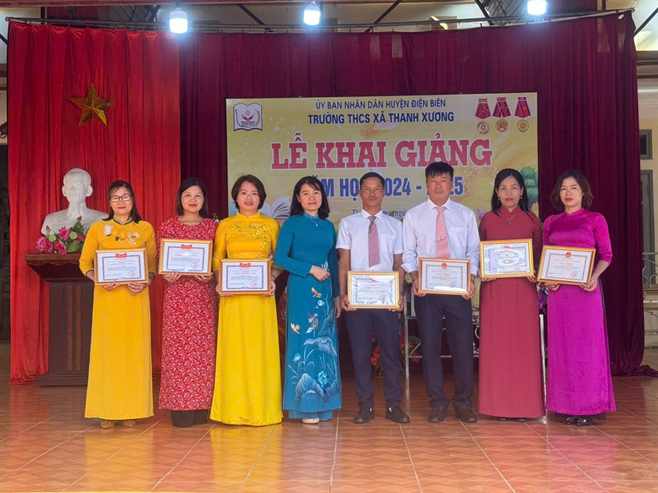 Giáo viên nhận giấy khen của UBND huyện Điện Biên