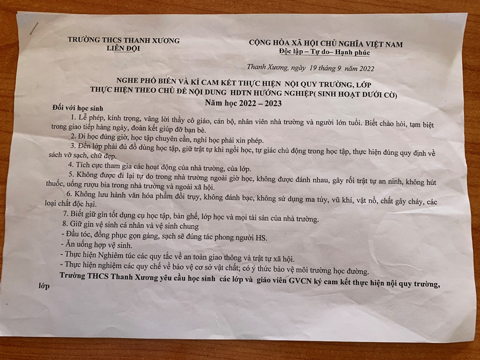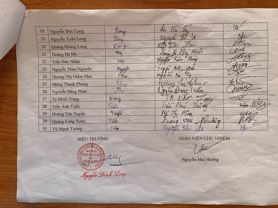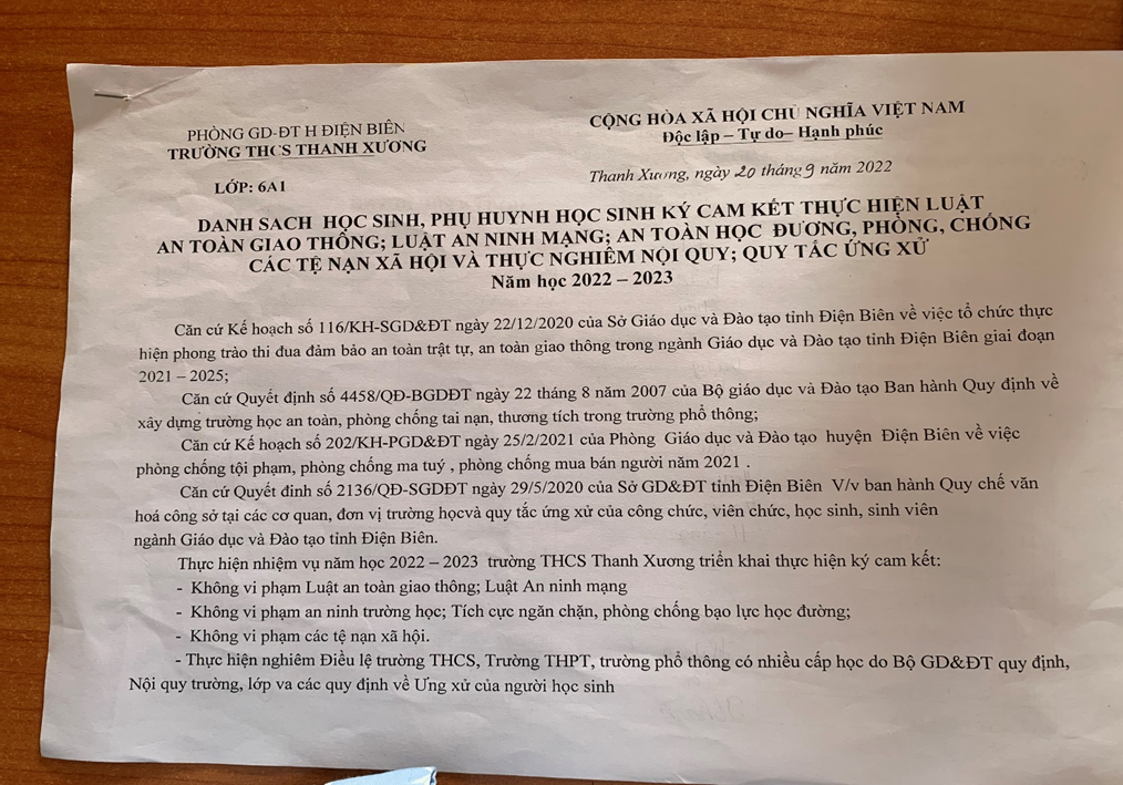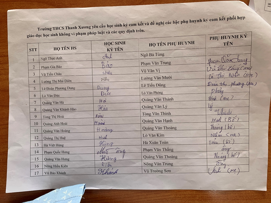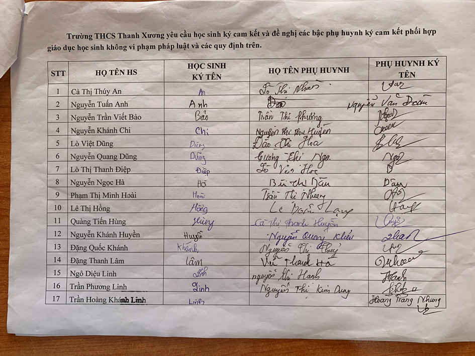 Một số danh sách Học sinh; Phụ huynh học sinh ký cam kết thực hiện Luật An toàn giao thông, an toàn trường học, phòng chống các tệ nạn xã hội và thực hienj Quy tắc ứng xử trường học:
