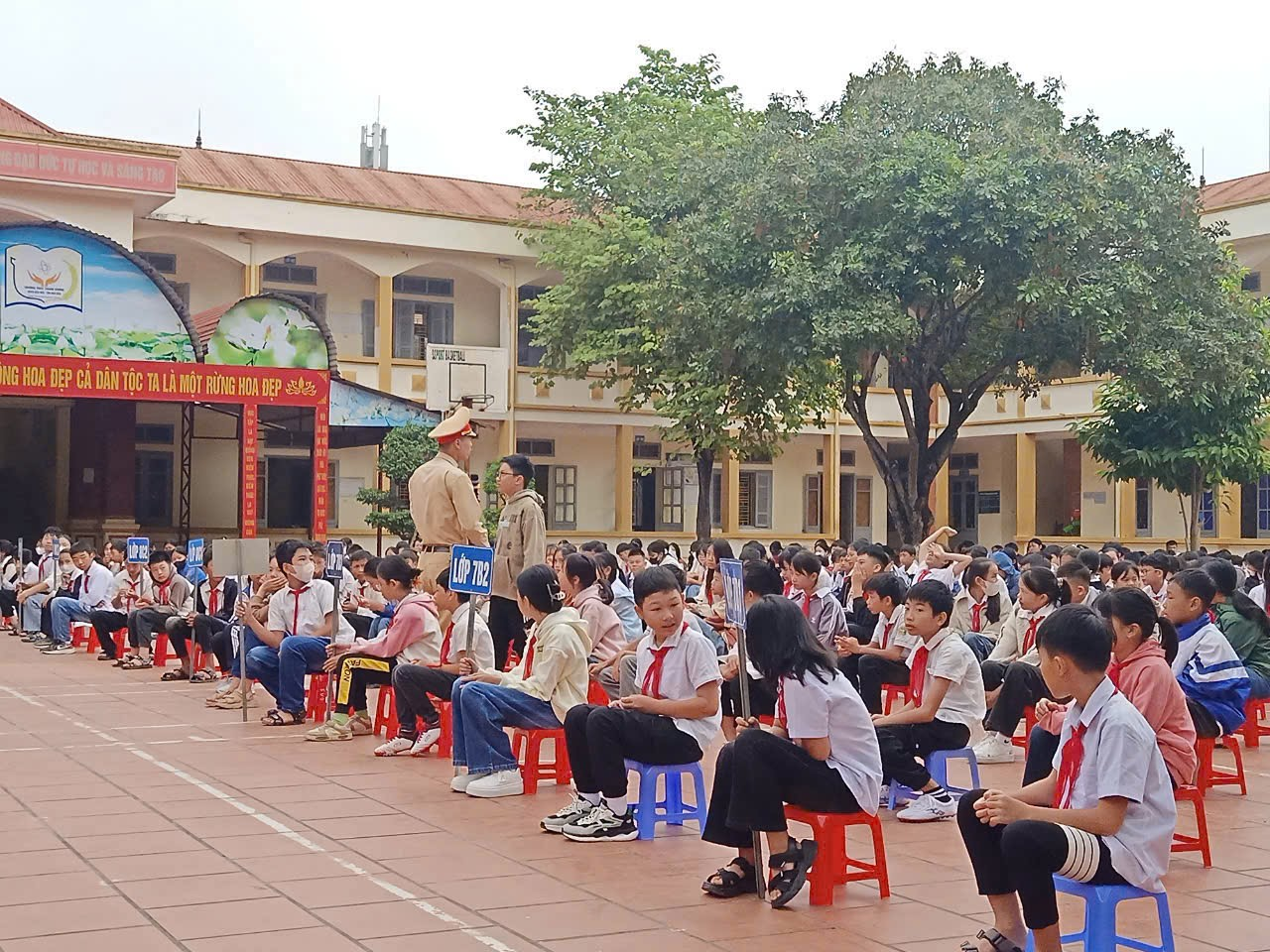 Trường THCS xã Thanh Xương tổ chức tuyên truyền, phổ biến giáo dục Pháp luật về Trật tự an toàn giao thông và hướng dẫn tham gia giao thông an toàn năm học 2024-2025.